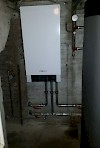 Der Verdichter saugt das nun gasförmige Arbeitsmedium an und presst es zusammen. Durch den zunehmenden Druck erhöht sich die Temperatur des Gases. Der zweite Wärmetauscher (Verflüssiger) überträgt die Wärme auf das Wärmeträgermedium des Heizkreises (meist Wasser), mit dem schliesslich die Wohnung geheizt wird.